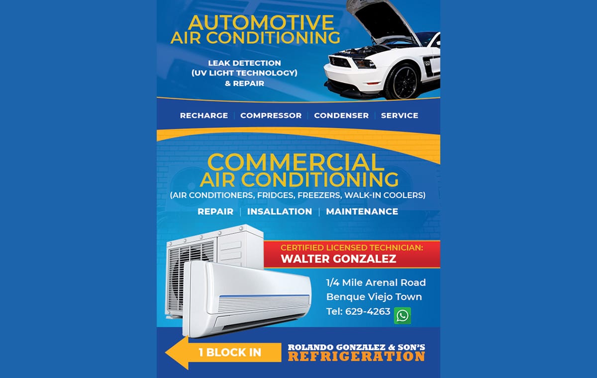 Sign design done for Rolando Gonzalez & Son’s Refrigeration in Benque Viejo Town, Cayo.